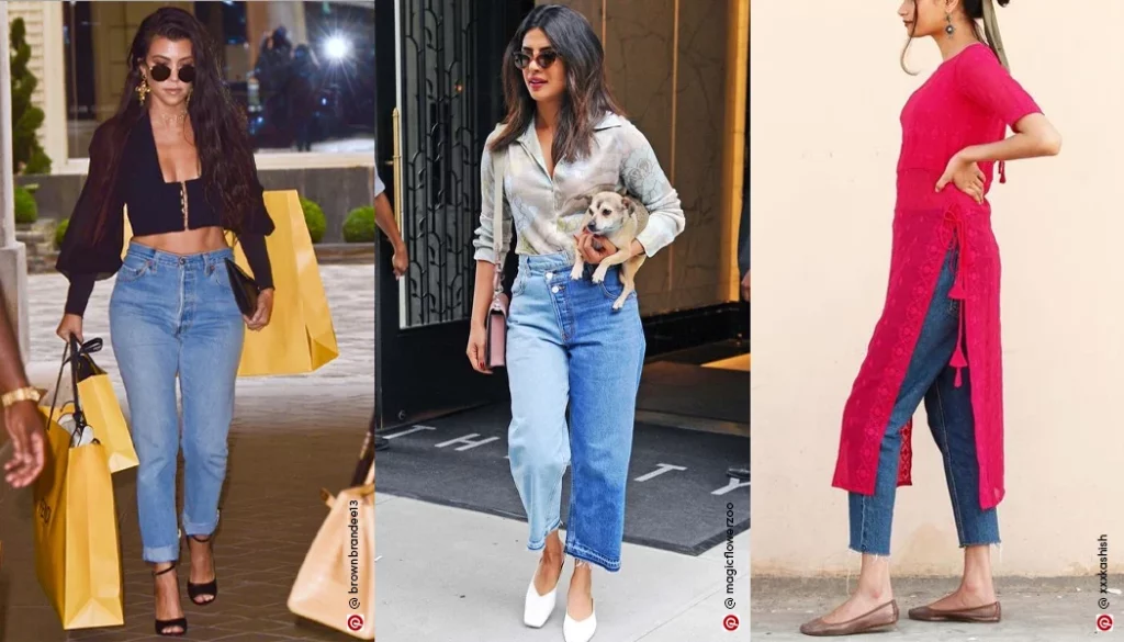 These usually high-waisted jeans that fit snugly around the thigh and tapered at the bottom were once considered uncool and side more towards being comfortable and less toward being high fashion. However, in this new era, people are truly accepting of the fact that being high fashion can also mean being comfortable at the same time. This is why once-considered uncool mom jeans are making their comeback now with all fashion icons and girls like Hailey Bieber, Bella Hadid, Kendall Jenner, Selena Gomez, Priyanka Chopra, and so many more were spotted wearing them. Let’s see how you can style them in 5 trendy ways!!!