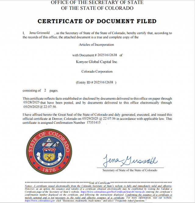 Konyee Global Capital Inc.