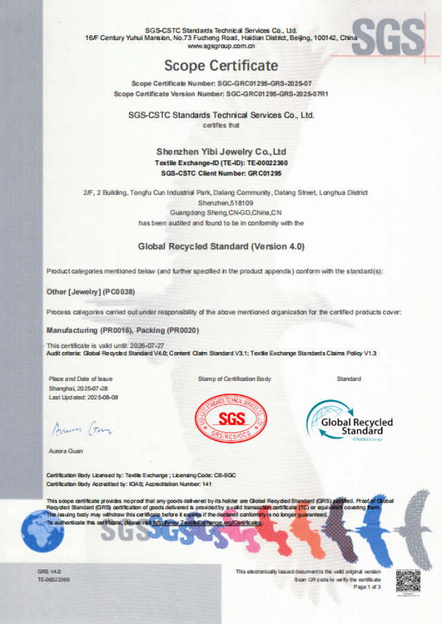 In the coming years, as recycled material traceability becomes more central to consumer trust, YIBI’s layered investment — combining stainless steel excellence, jewelry-grade finishing, and certified chain-of-custody discipline — is likely to make it a benchmark in the industry.